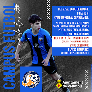 S'amplia la ⭕ DATA LÍMIT D'INSCRIPCIONS ⭕ pel campus nadalenc de futbol de #Vallmoll ⚽❄️